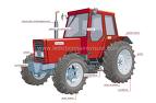 - l'animation de machines agricoles comportant des pièces rotatives ou des vérins, grâce à une prise de force le plus souvent localisée à l'arrière, ou à un dispositif hydraulique ou pneumatique.